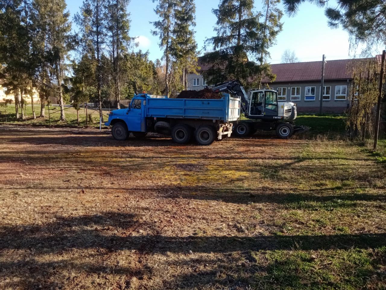 Začínají terénní úpravy a sondy pro přípravu víceúčelového sportoviště na místě bývalého antukového hřiště - duben 2020.